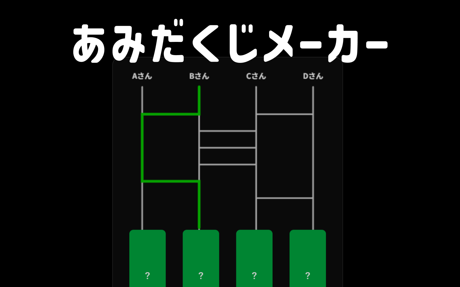 3〜5人で使える無料のあみだくじ。線を辿ると結果がわかる演出付き。担当決め、順番決め、くじ引きに。